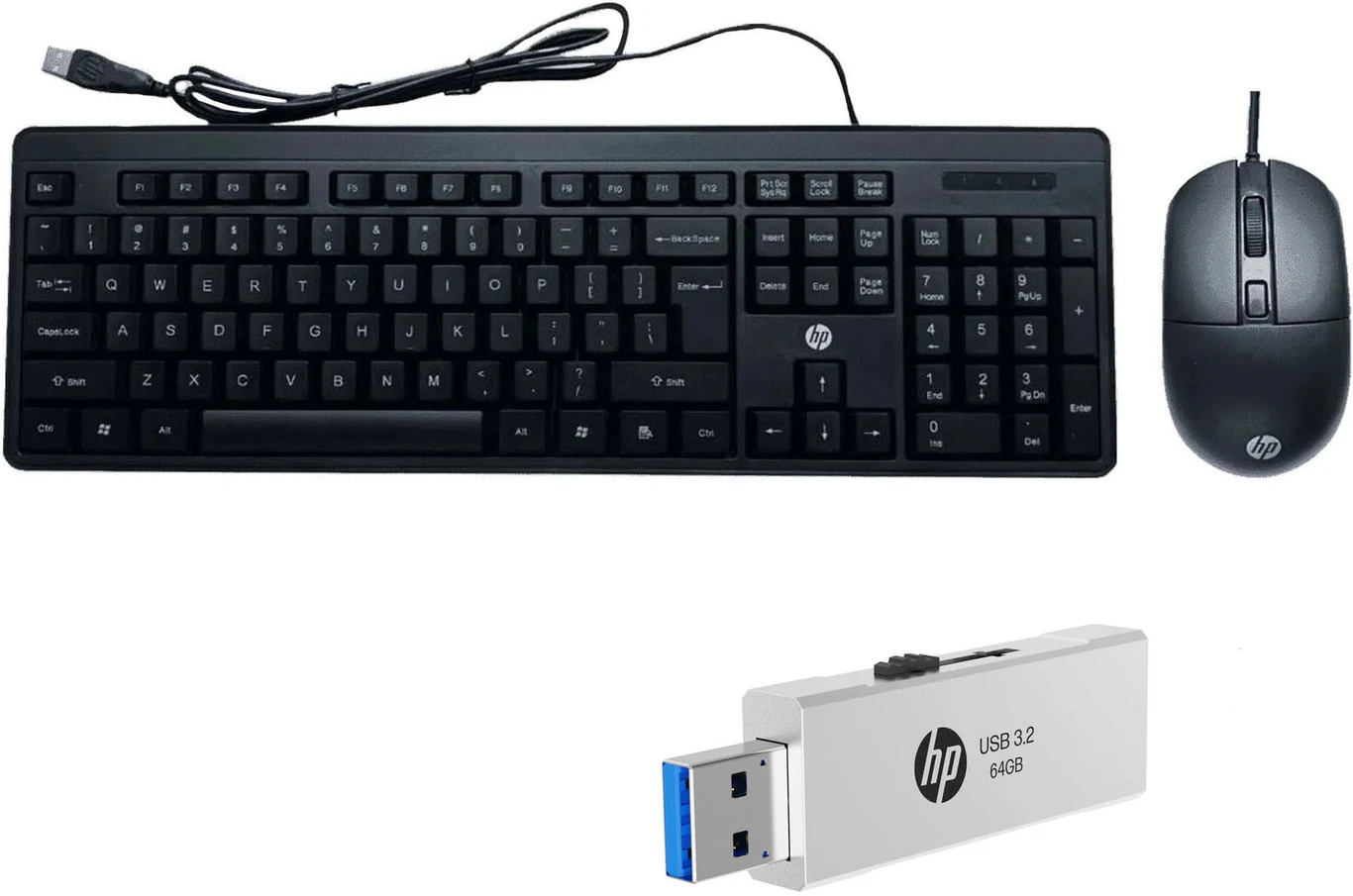 HP KM150 USB Combo Keyboard & Mouse + 64GB 818W USB3.2 Pen Drive Combo Set (Black, Silver) (Copy)